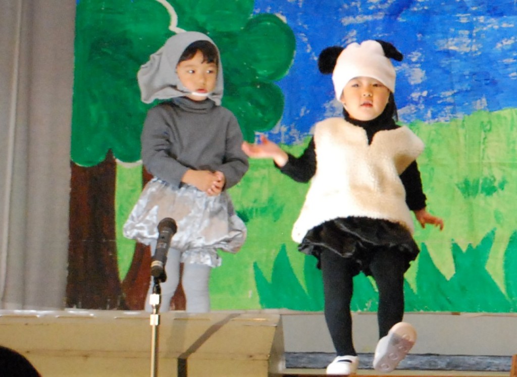 緊張する様子も見られましたが、立派に表現することができました。温かいまなざしで最後までご覧いただき、ありがとうございました。 また、年長組の保護者の方には、会場の片づけのご協力をいただきました。お陰様でスムーズに終えることができました。ありがとうございました。