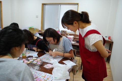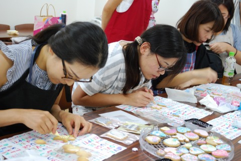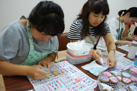 やわらかめのアイシングで、クッキーの表面を塗り潰したり、絵を描いたりします。