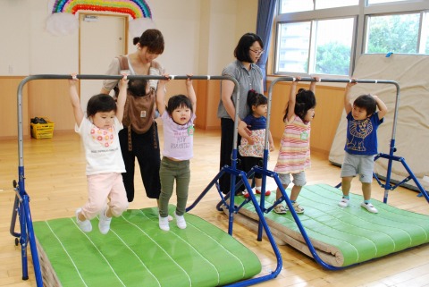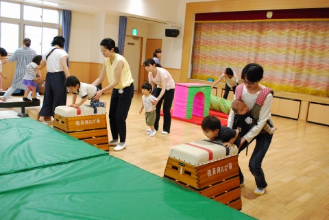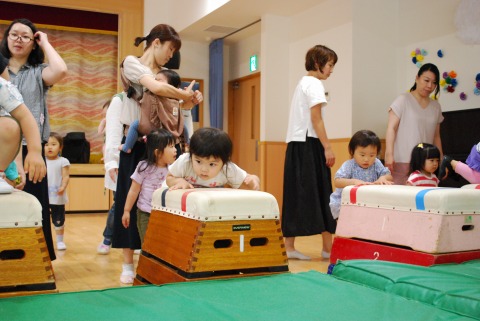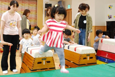 今日も水遊びができませんでしたが、ホールで身体を動かして遊びました。サーキットは今回で3回目。もう、上手にできるようになりました。