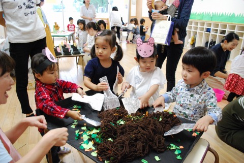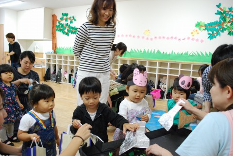次回のてんしぐみは、9月10日(火)「えのぐであそぼう」です。絵の具が付いても構わない服装でご参加ください。また、ぬれ手拭きがあると便利だと思います。