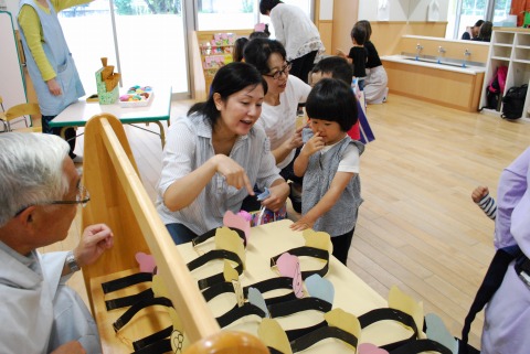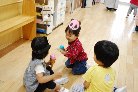 宿題だったお金を切って持ってくる約束は、みんな覚えていました。今日は縁日ごっこを意識して、甚平さんを着てきたてんしちゃんもいました。