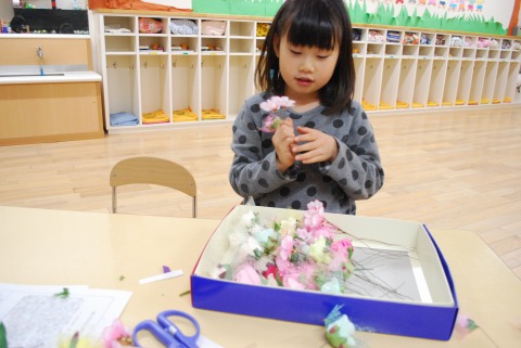 預かり保育のみかえるタイムで作った「お祝いの日のコサージュ」