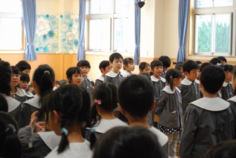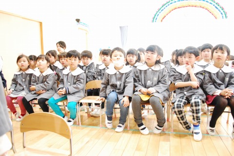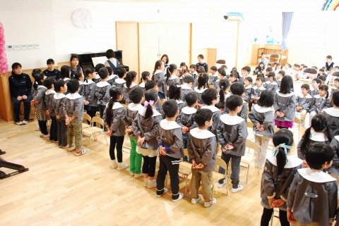 昨日は年中組・年長組が集まって、卒園式の予行練習を行いました。