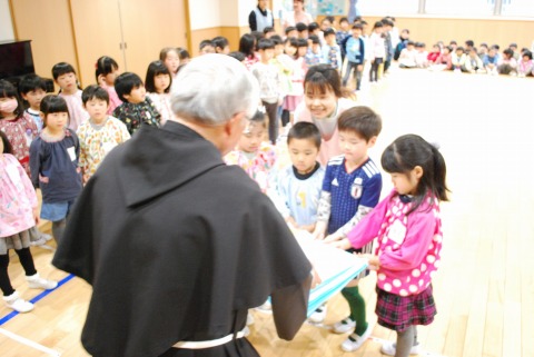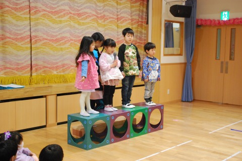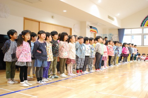 3学期に入り、当番活動や行事の進行係は年中児が引き継ぎました。今日の会では、年長児が司会進行をする年中児に対して、温かく優しいまなざしを向けていたのがとても印象に残っています。