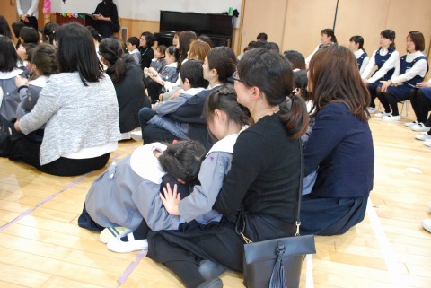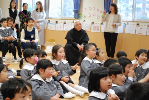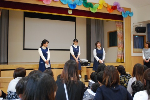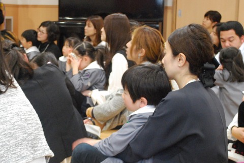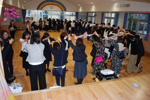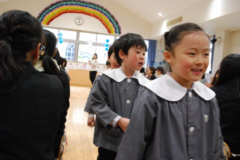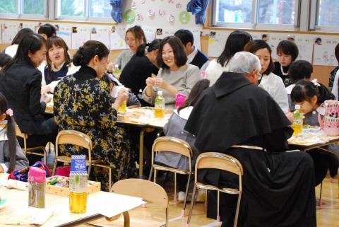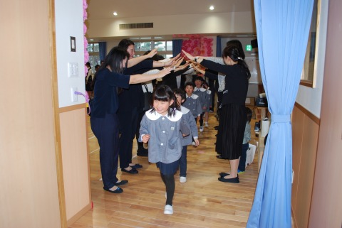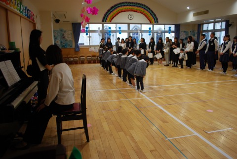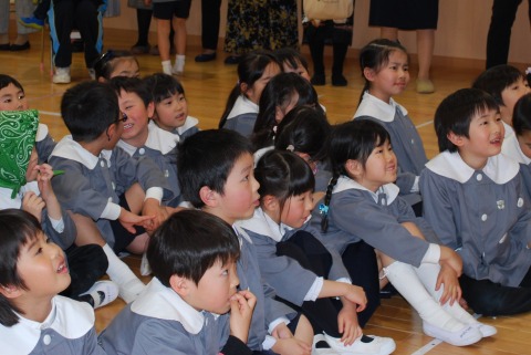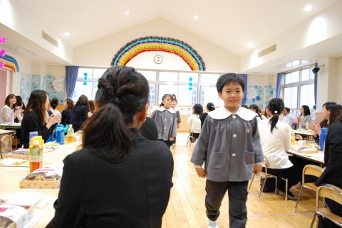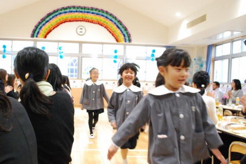 今日は、保護者の方が1月より準備してくださった「卒園をお祝いする会」がありました。たくさんの拍手で迎えられ、緊張しながらおも笑顔で入場してきた子どもたちでした。会食以降はいつも通りのおしゃべりが始まり、時折、おかあさんに甘える姿がありました。