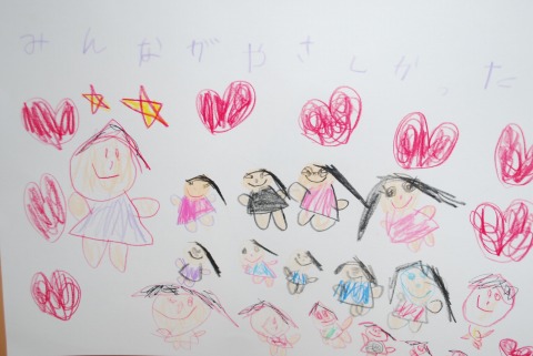最後に、おかあさん方が作ってくださった、「9色の虹色」のお話を聞きました。どうして9色なのか…。