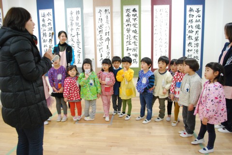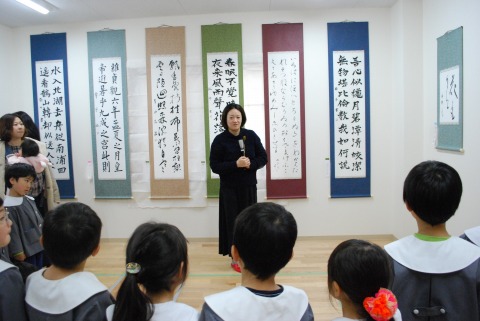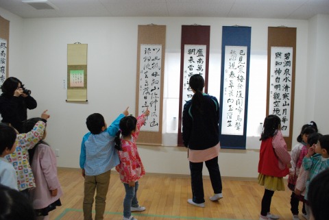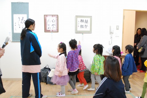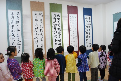 時間に追われがちな日々ですが、しっかりと時間を作って書と向き合って表現しているおかあさん方の作品展。日々の練習の成果を子どもたちと一緒に鑑賞しました。