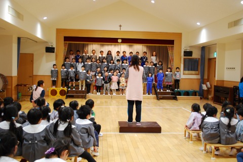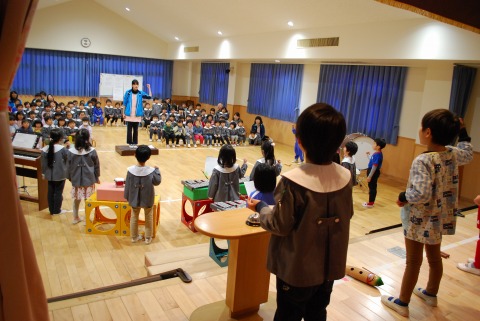 1月より取り組んでいる合奏です。昨日は、年少組・年中組の子どもたちがお客さんになって、年長組の発表を鑑賞しました。