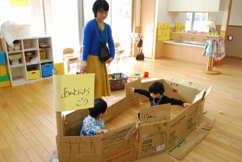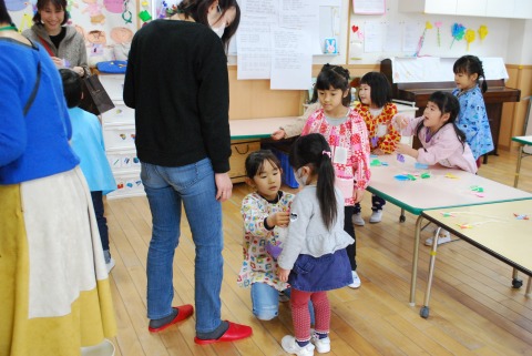 手を引いてあげたり、しゃがんで視線を合わせて話しかける姿などがあり、小さいながらにも「お・も・て・な・し」の気持ちで対応した年中・年長組の子どもたちでした。
