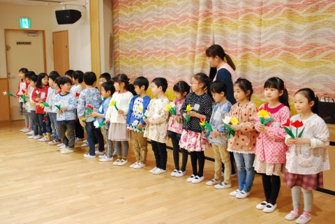 来年度、入園のお子様と保護者の皆様、今日はありがとうございました。チューリップや桜の花が咲く頃、園服を着て幼稚園に来てくださいね。お待ちしています。
