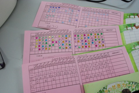 「できたよ」のシールやスタンプ、〇がいっぱいありました。