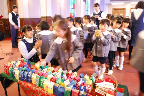 アドベントの4週間、子どもたちは紛争や災害で困っている人がいる話を何度もききました。そして、少しの我慢や手伝いをして、おうちの方からいただいたお金を献金箱に入れ貯めてきました。今日は、その献金をお捧げし、みんなでお祈りをしました。