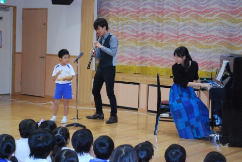 今日は、オーボエの渡辺健太さんとピアノの森夏野さんが子どもたちの前で演奏してくださいました。