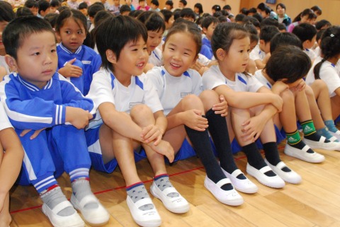 ウッドブロッグをでリズム打ちをした年長さん。