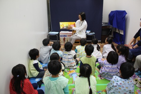 毎日、先生に絵本を読んでもらったり、絵本同好会のおかあさんに読んでいただいたりするのも好きですが、おはなし会で読み聞かせボランティアの方に読んでいただくのもとても楽しみにしています。