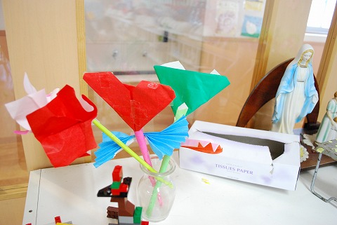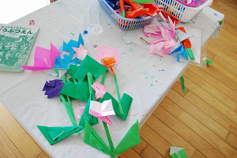 まりあぐみの子どもたちは、折り紙が大好き!本を見て折り方を確認して作品を作っています。乞うご期待!!