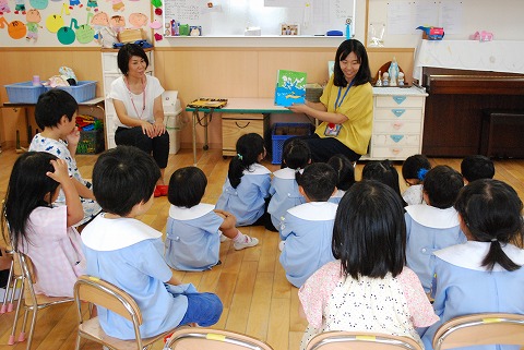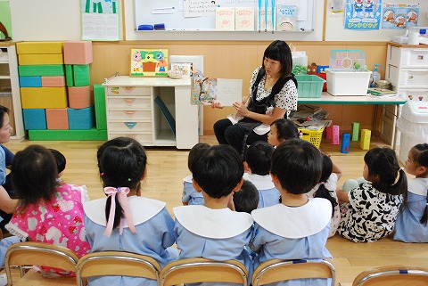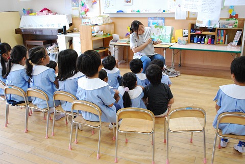 いつも賑やかな保育室が、絵本の時間は不思議なことに「シ~~ン」としています。