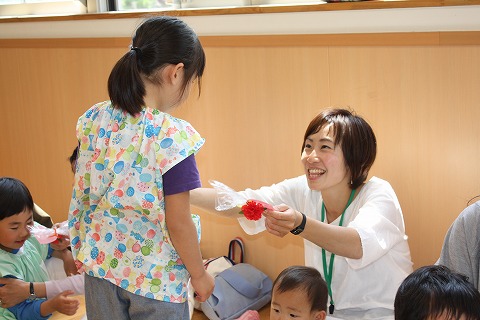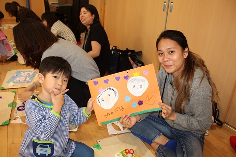 2日後に母の日を控えたこの日、幼稚園ではお母さんやご家族をお招きし、母の日参観を行いました。学年毎に時間帯は異なりますが、子どもたちは保護者の皆さんとふれあい遊びをしたり、一緒に歌を歌ったり、製作に取り組んだりしました。そして、最後には子どもたちから素敵なプレゼントが...!!!