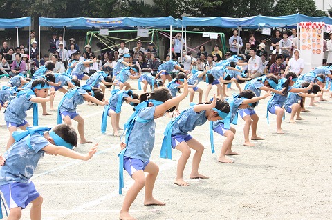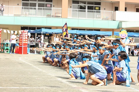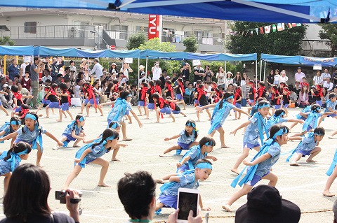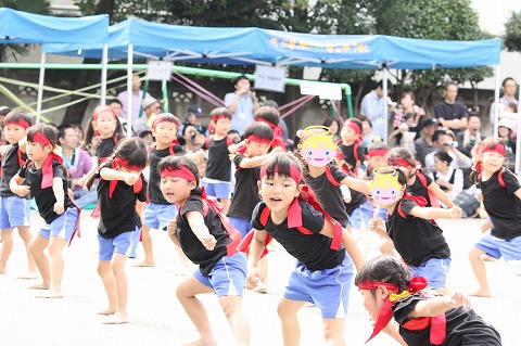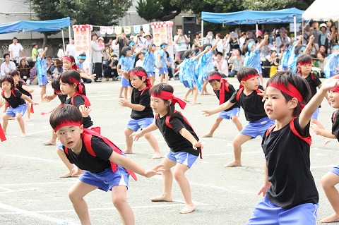 お遊戯から一転、本園恒例の年中・年長組によるソーラン節では、園児たちの気合いの入った掛け声が園庭に響きました。