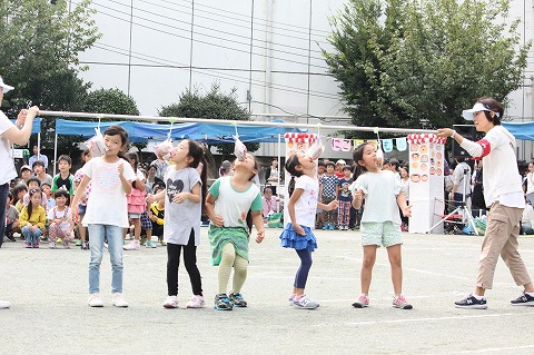 卒園生が参加するパン食い競走。