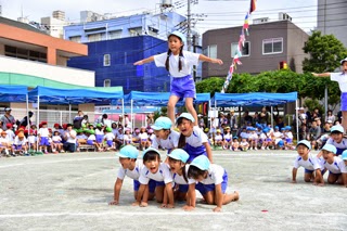 年長組は組体操を披露