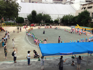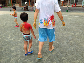 おやくそく、首から下につける。いやがるお友だちには、つけない。