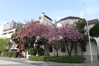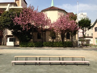 広い園庭の八重桜も満開です