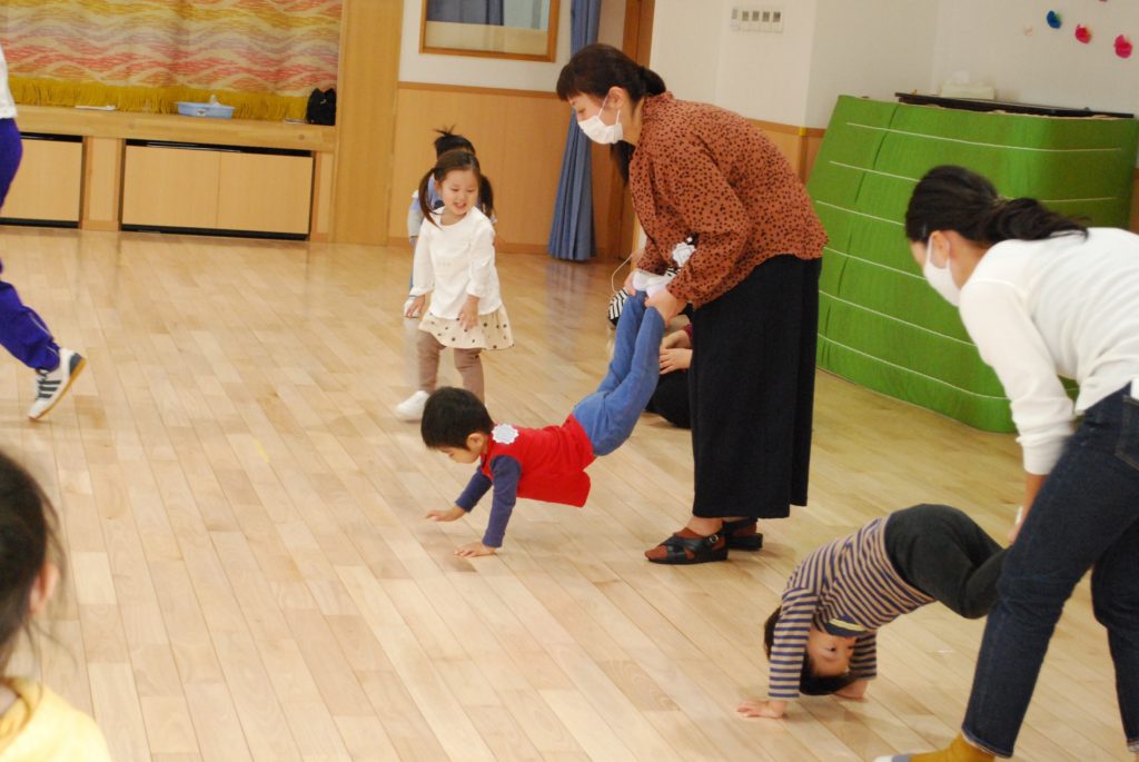 音楽に合わせて体操をしたり、鉄棒・平均台・パラバルーンと楽しんで身体を動かしました。ご参加ありがとうございました。