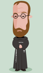 コルベ神父は1894年にポーランドの織物職人の息子として生まれました。子供の頃は腕白でわがままだったそうですが、10歳の時に教会で聖母の祭壇に祈り、聖母のご出現を受けられました。聖母は赤い冠と白い冠を持ち「どちらの冠がほしいか」たずねられました。「両方ともください」と答え、イエスと同じように少年が望んだことを聖母は喜ばれました。赤い冠は殉教、白い冠は生涯純潔である印でした。この時から少年の生活は一変し信仰に励み、16歳でマキシミリアノという修道名をもらい、1918年にはコンベルツアル聖フランシスコ修道会の司祭に叙階され、コルベ神父になりました。 |